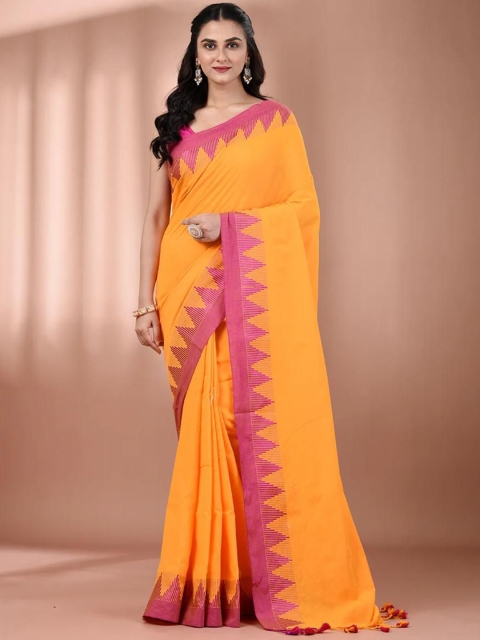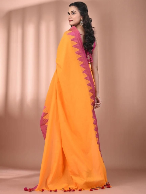 - Solid saree with woven design border