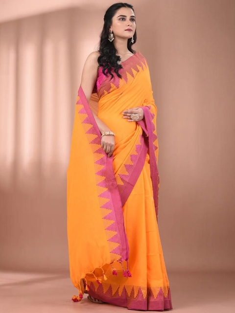 - Yellow and pink khadi saree