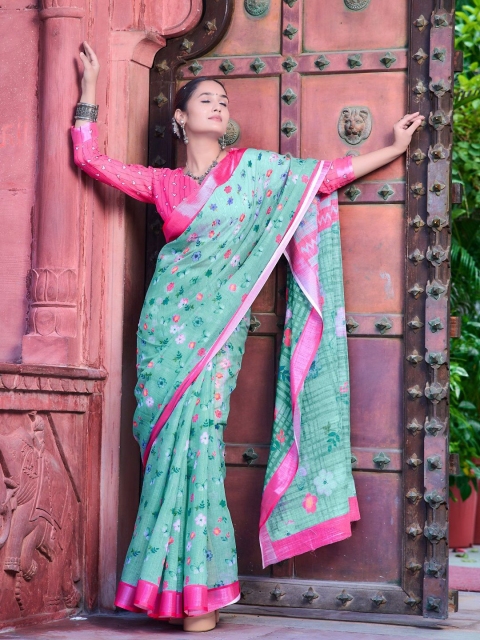 Suha Womens Fashion Ethnic Pure Cotton Sea Green Color Saree