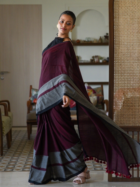 - Maroon and grey saree