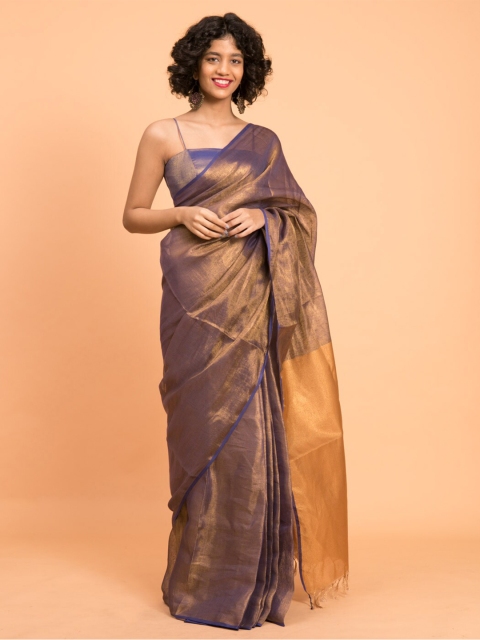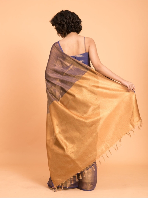 3 reviews for Suta Purple & Gold-Toned Zari Pure Linen Saree