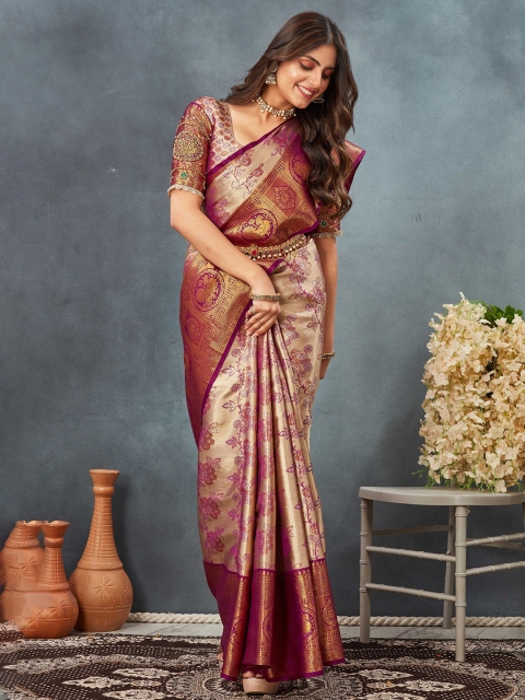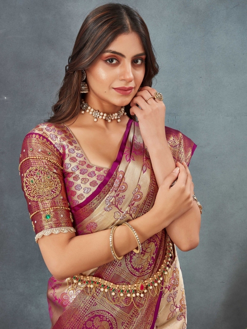 - Purple and gold-toned dharmavaram saree
