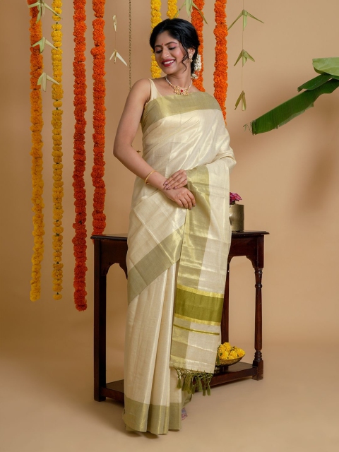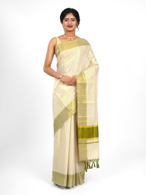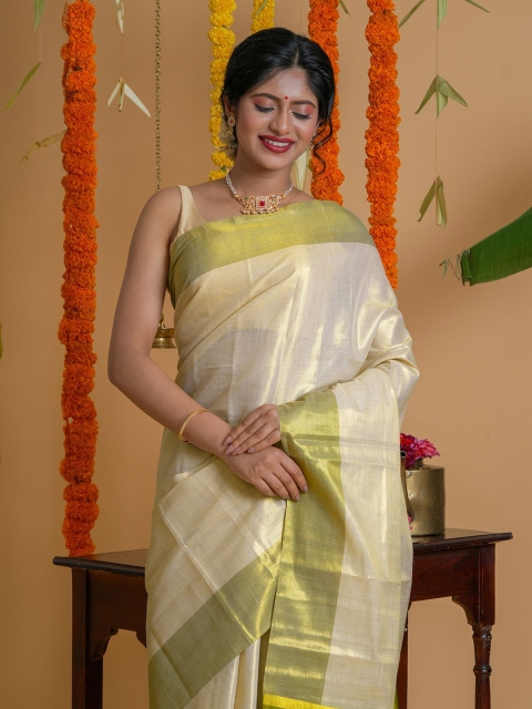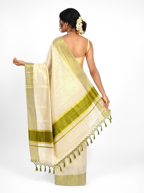- Green and cream-coloured kasavu saree