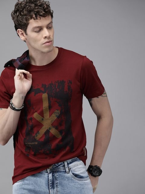 Be the first to review “The Roadster Lifestyle Co Men Maroon Graphic Printed Round Neck Pure Cotton T-shirt”