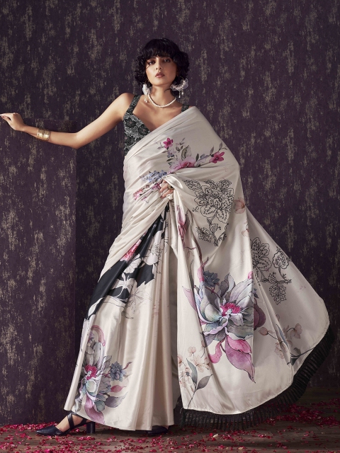 - Floral printed saree with no borderĀ