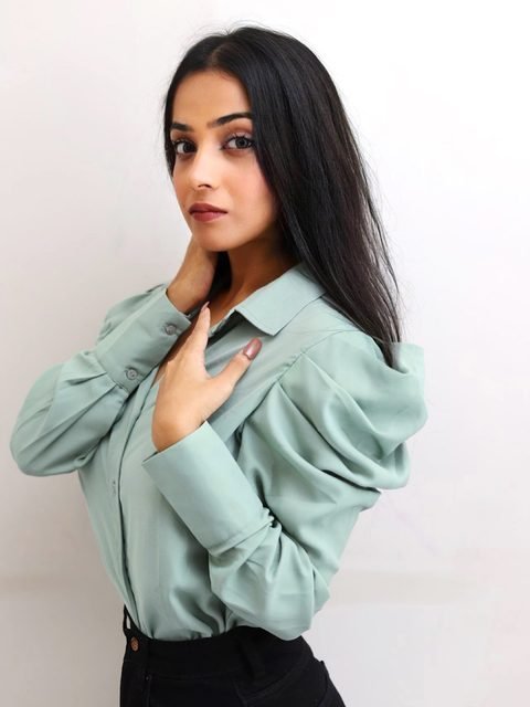 Stay stylish and trendy with this sophisticated top. The solid pattern and shirt collar of this beautiful top lend you the desired look.