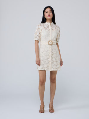 Twenty Dresses by Nykaa Fashion Cream Lace Mini Shirt Dress With Self-Fabric Belt (Set of 2)