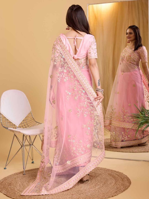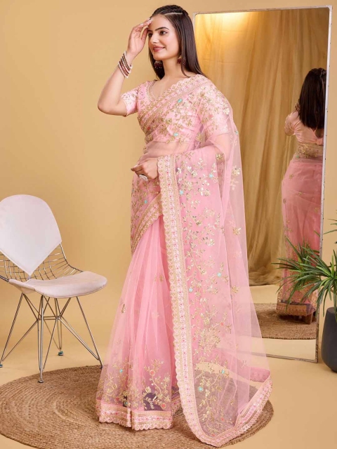 Mandara Floral Embroidered Net Saree