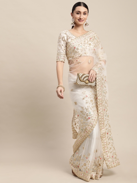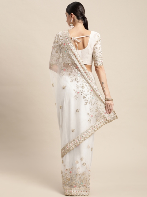 2 reviews for Mandara Off White Floral Embroidered Net Saree