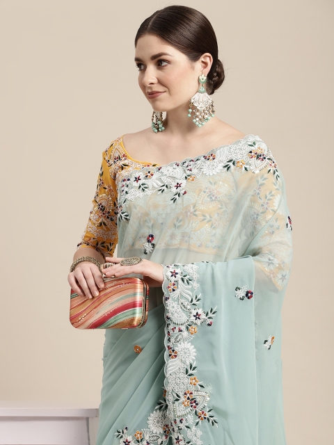 Disclaimer: The model is wearing a stitched version of the blouse. The saree comes with an unstitched blouse apiece. See the image for a mock-up of what the actual blouse would look like.