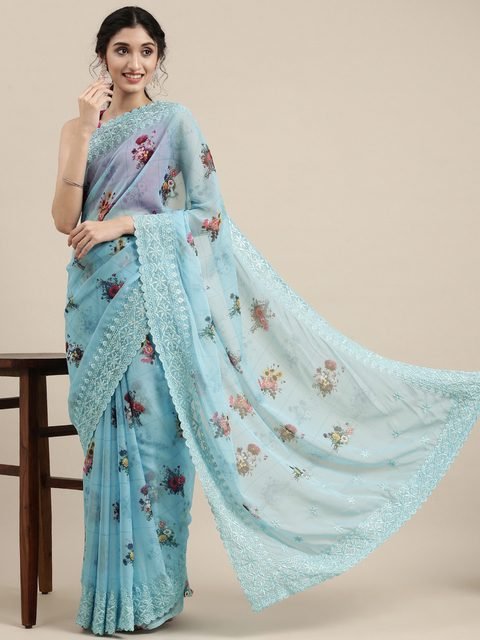 The blouse worn by the model might be for modelling purpose only. Check the image of the blouse piece to understand how the actual blouse piece looks like.