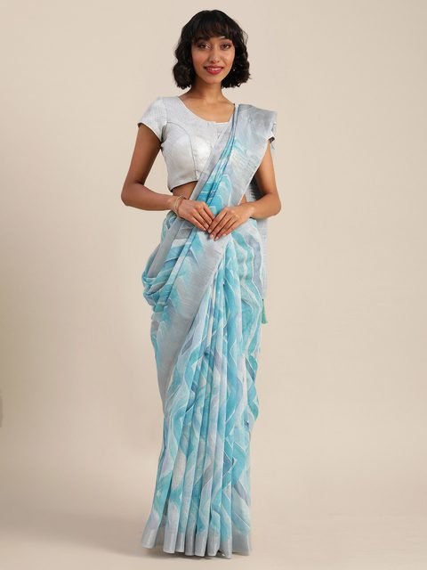 Look dashing in this feminine traditional saree made by VASTRANAND. Match this blue design with caged heels and statement jewellery when you have a event to attend.