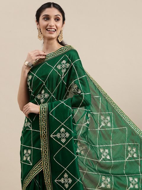 The blouse worn by the model might be for modelling purpose only. Check the image of the blouse piece to understand how the actual blouse piece looks like.