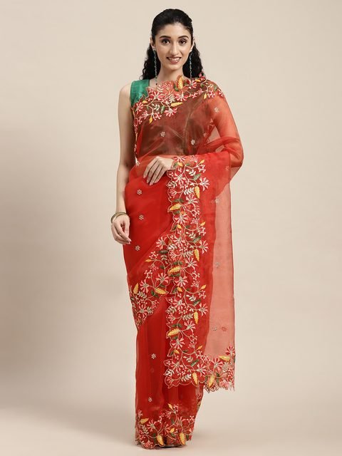 The blouse worn by the model might be for modelling purpose only. Check the image of the blouse piece to understand how the actual blouse piece looks like.