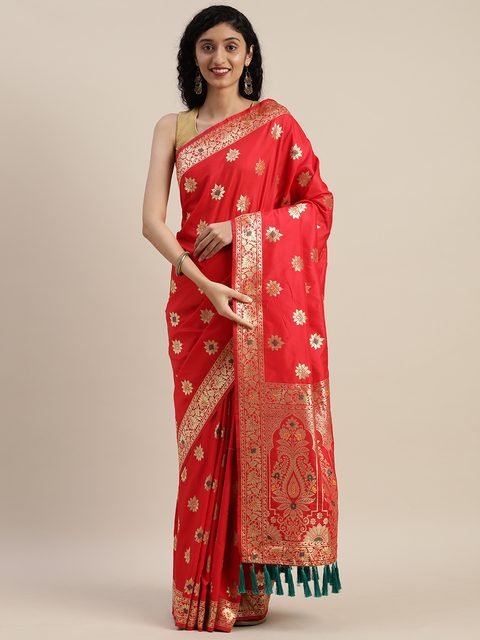 Show off your feminine side with this elegant VASTRANAND traditional saree. Match this red design with caged heels and statement jewellery when you have a event to attend.