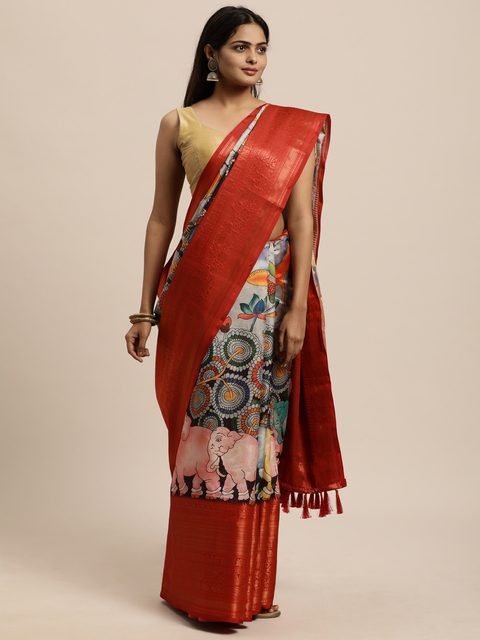• Kalamkari printed saree with solid border