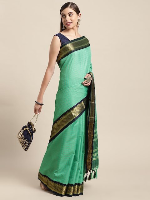 - Sea green and navy blue gadwal saree
