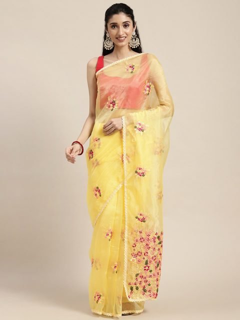 The blouse worn by the model might be for modelling purpose only. Check the image of the blouse piece to understand how the actual blouse piece looks like.