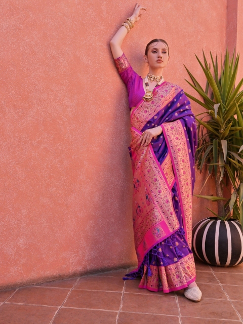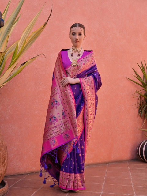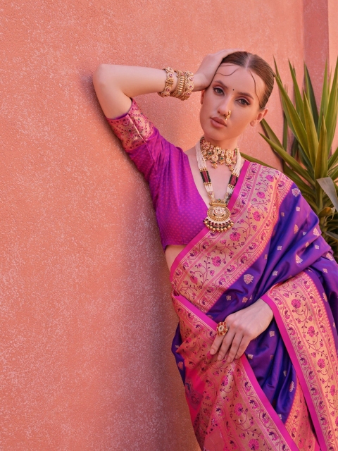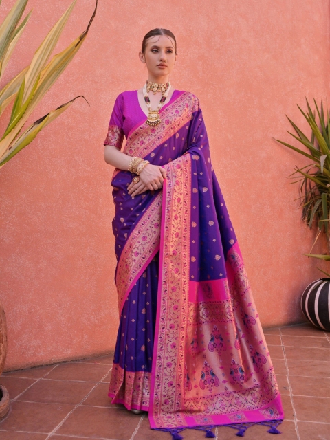 - Blue and pink paithani saree