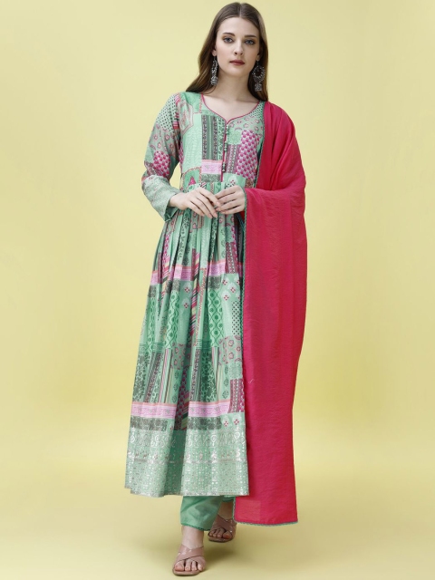 Turquoise blue printed Kurta with Trousers with dupatta