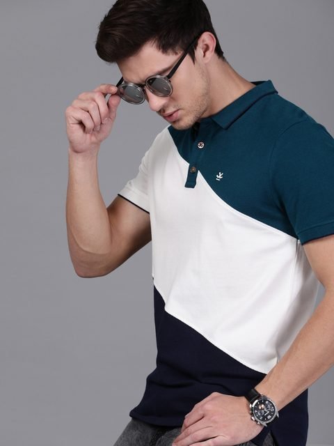 Be the first to review “WROGN Men Teal Blue White Slim Fit Colourblocked Polo Collar Pure Cotton T-shirt”