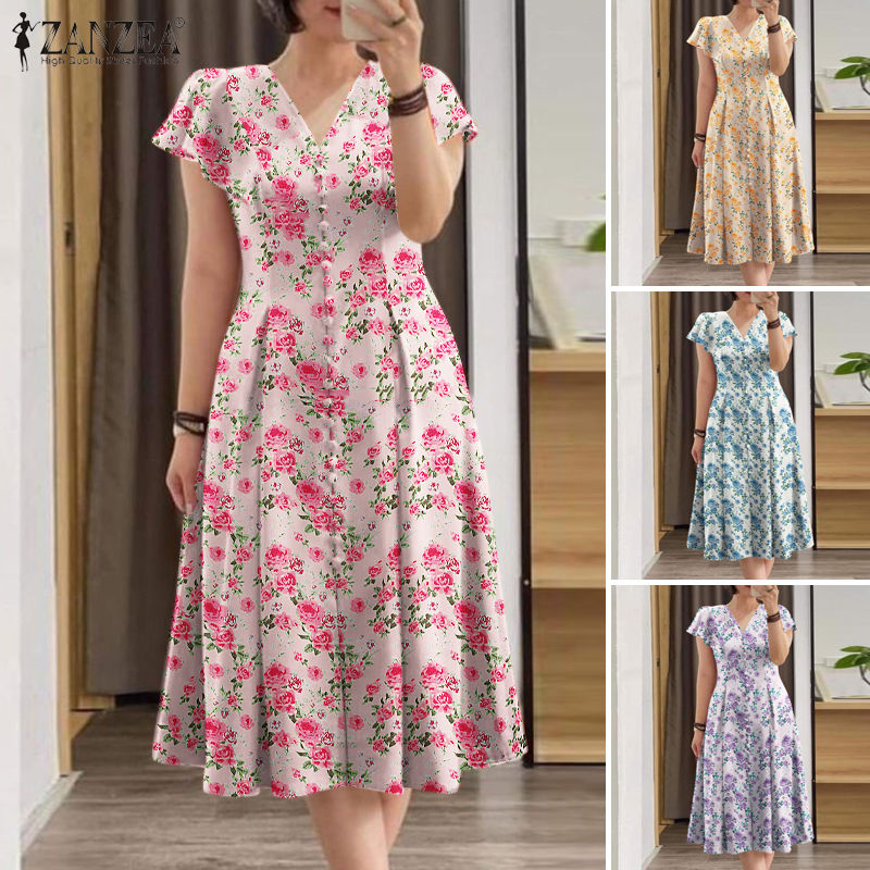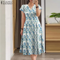 Mandara Women's Dresses Elegant Holiday Short Sleeve V-Neck Floral Ruffle Hem A-Line Dress #12